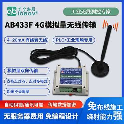 | AB433F1G:發(fā)送模塊4AI+4AO,接收模塊4AI+4AO。無線4G網(wǎng)絡(luò)。 |