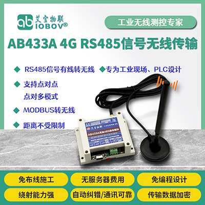 AB433A1G 485信號無線4G模塊采用無線4G通信技術(shù),可替代連接電纜,大大降低企業(yè)人力物力成本,減少施工和維護難度。AB433A支持PLC、DCS、智能儀表、傳感器、組態(tài)軟件、人機界面、觸摸屏、測控終端等設(shè)備組成無線測控網(wǎng)絡(luò),支持一主多從組網(wǎng)。 AB433A1G無線4G終端具有標準RS485和RS232接口,可以直接代替有線的RS485網(wǎng)和RS232網(wǎng),實現(xiàn)無線485、無線232組網(wǎng)。傳輸距離不受限制。相比GPS通信傳輸速度快,延遲小。使用4G通信方式,用戶連接服務(wù)器是免費的,只需支付通信費用即可。針對工業(yè)用戶,全工業(yè)級設(shè)計,經(jīng)過大量測試,質(zhì)量穩(wěn)定可靠。免編程,撥碼開關(guān)即可設(shè)置所有工作參數(shù)。產(chǎn)品體積小巧,標準導軌安裝。廣泛應(yīng)用于工業(yè)自動化、廠礦、電力、水利、環(huán)保、農(nóng)業(yè)、交通、軍工、安防等領(lǐng)域。 |