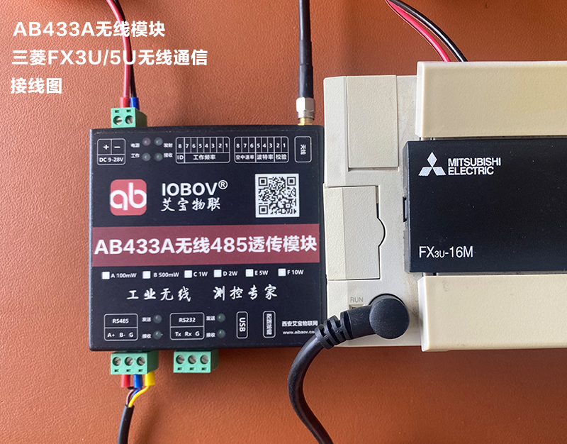 三菱FX3U/FX5U PLC的RDA與SDA端口,并聯(lián)接入AB433A的A+端口
