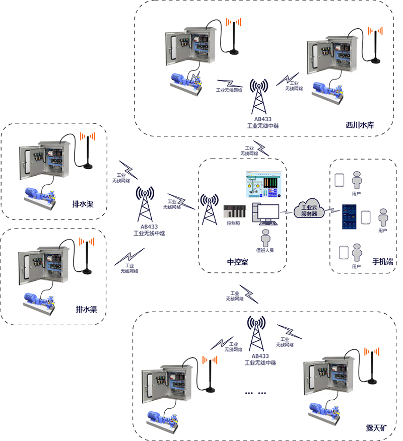 核心設(shè)備:AB433W,構(gòu)建水泵無(wú)線遠(yuǎn)程自動(dòng)控制系統(tǒng)。