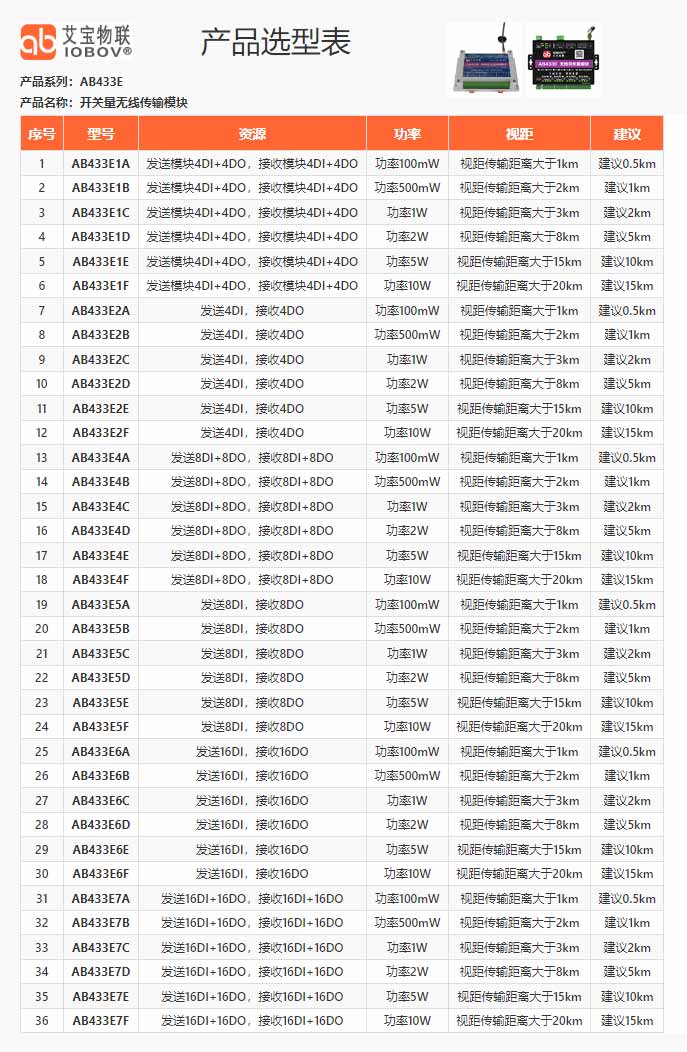 艾寶物聯(lián)IOBOV,是一家國家高新技術(shù)企業(yè),專注于工業(yè)無線測控和數(shù)傳通信,以超遠(yuǎn)傳輸距離、穩(wěn)定可靠的性能,賦能多樣化工業(yè)應(yīng)用場景,并在客戶中獲得了廣泛的認(rèn)可。 主要產(chǎn)品包括各種類型的無線傳輸模塊,如開關(guān)量無線傳輸模塊(AB433)、模擬量無線傳輸(AB433F),PLC無線傳輸模塊(AB433A),PLC以太網(wǎng)無線傳輸模塊(AB433L)等。