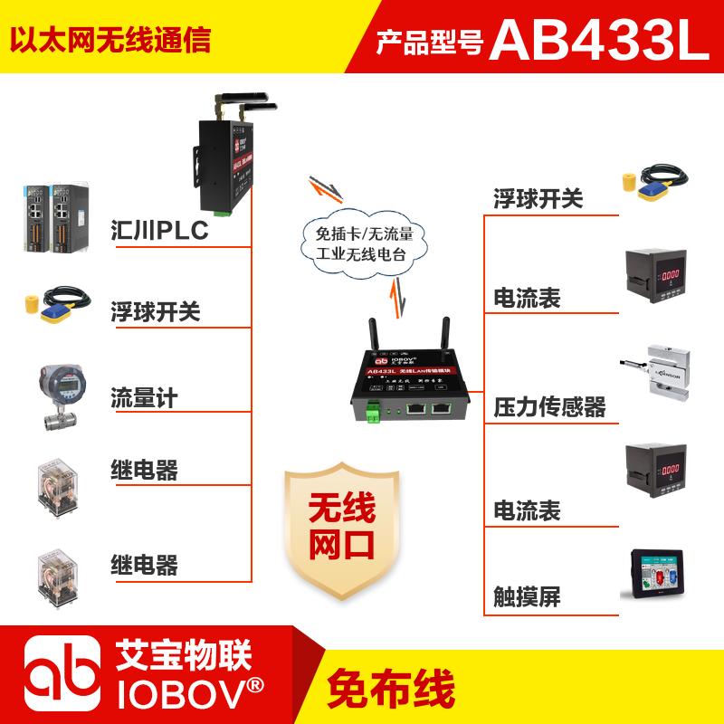 使用艾寶物聯(lián)的AB433L無線以太網設備,給出以下解決方案: