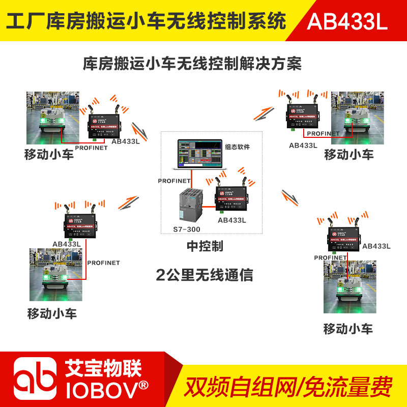庫房布線復雜且小車位置靈活,特選用艾寶物聯(lián)AB433L無線以太網設備,其卓越的穩(wěn)定性和抗干擾能力,確保了數(shù)據(jù)在復雜環(huán)境中實時、精準傳輸,完美解決有線通訊局限,優(yōu)化整體運營效率。