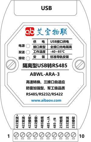 | 【用戶手冊】:艾寶物聯(lián)USB轉(zhuǎn)RS485系列說明書 |