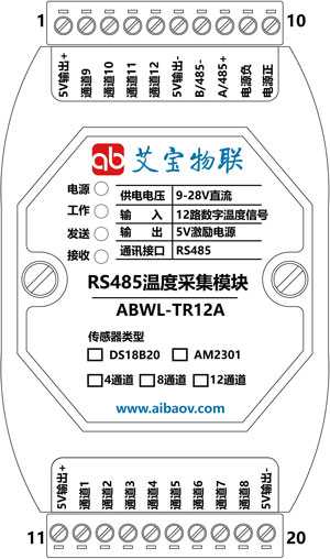 | 輸入通道:12路AM2301/DHT21采集 |
