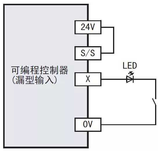 線(xiàn)PLC的輸入類(lèi)型:PLC的外部接線(xiàn)有漏型、源型輸入,PLC漏型輸入,如下圖: