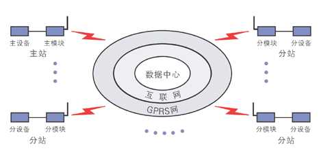 使用GPRS模塊組成點(diǎn)對(duì)多點(diǎn)的通信系統(tǒng)的示意圖如下圖所示。