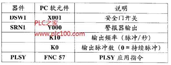警報器活動過程可以通過限定PLSY指令發(fā)出的脈沖數(shù)來控制。本例中,通過設置K0可得到連續(xù)脈沖輸出。