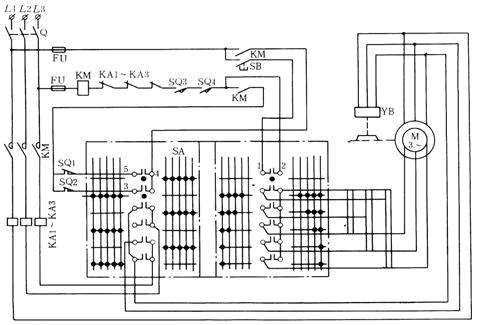 SB 則接觸器得電吸合并自鎖,電源接通,電動(dòng)機(jī)的運(yùn)行狀態(tài)由凸輪控制器控制。