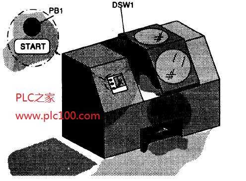 當(dāng)滑動(dòng)(安全)門(mén)關(guān)上,并且起動(dòng)按妞按下時(shí),運(yùn)行過(guò)程開(kāi)始。當(dāng)門(mén)關(guān)上,開(kāi)關(guān)DSW1動(dòng)作,給出輸入X001。起動(dòng)按妞PB1輸入X000給可編程控制器。
