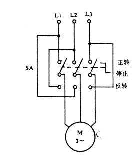 電動機處于正轉(zhuǎn)狀態(tài)時,欲使之反轉(zhuǎn),必須把手柄扳到“停止”位置,先使電動機停轉(zhuǎn),然后再把手柄扳至“反轉(zhuǎn)”位置。如直接由“正轉(zhuǎn)”扳至“反轉(zhuǎn)”,因電源突然反接,會產(chǎn)生很大的沖擊電流,燒壞轉(zhuǎn)換開關(guān)和電動機定子繞組。