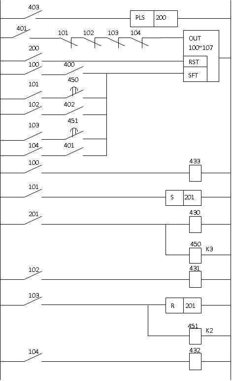 答:機(jī)械手動(dòng)作順序表、現(xiàn)場(chǎng)器件與PLC內(nèi)部繼電器對(duì)照表、PLC與現(xiàn)場(chǎng)器件接線圖以及梯形圖如下圖所示。