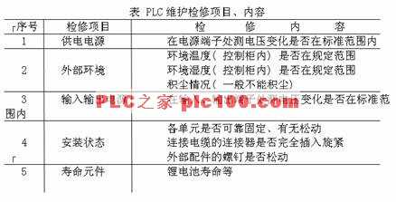 PLC日常維護(hù)檢修的一般內(nèi)容如表所示。