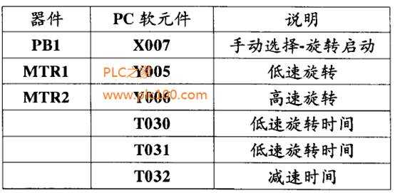 按下“SPIN'’按妞PB1,使得PC輸入點(diǎn)X007有效。這樣就啟動了一系列完全由定時器控制的旋轉(zhuǎn)操作。