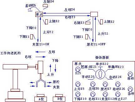 所示為用機械手移送工件的機械系統(tǒng)。左上為原點,工件按下降→夾緊→ 1