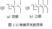 轉(zhuǎn)換開關(guān)的圖形符號和文字符號如圖1-11