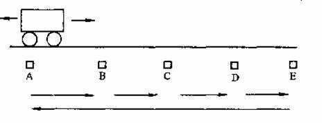 設(shè)計(jì)一小車控制程序,如圖所示,要求起動(dòng)后,小車由A處開(kāi)始從左向右行駛,到每個(gè)位置后,均停車2s,然后自行啟動(dòng);到達(dá)E位置后,小車直接返回A處,再重復(fù)上述動(dòng)作,當(dāng)每個(gè)停車位置均停車3次后,小車自動(dòng)停于A處。試用步進(jìn)指令和移位指令兩種方法設(shè)計(jì)。