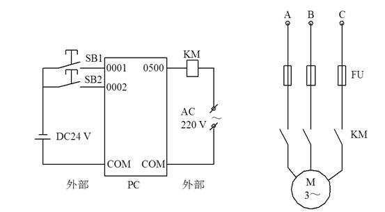 交流電機(jī)單向運轉(zhuǎn)的啟??刂凭€路圖、PLC接線