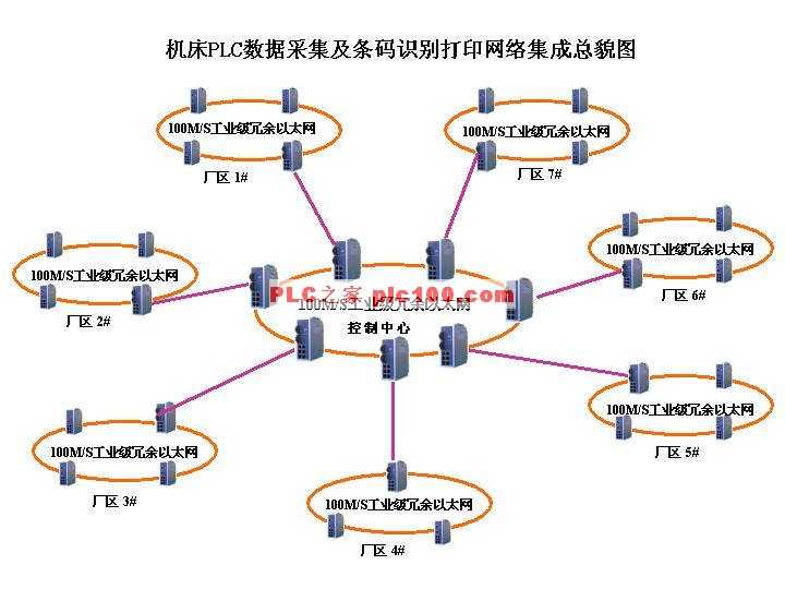 從以上兩點(diǎn)來(lái)看,該網(wǎng)絡(luò)更接近于城域網(wǎng)。根據(jù)IEEE802局域網(wǎng)標(biāo)準(zhǔn)委員會(huì)的最初定義,城域網(wǎng)(MAN)是以光纖為通信媒體,能提供高速率(大于45Mbit/s),支持?jǐn)?shù)據(jù)、話音和圖形的綜合業(yè)務(wù)傳輸,在跨度為50km—150km的城市覆蓋范圍內(nèi)實(shí)現(xiàn)高速/寬帶傳輸?shù)臄?shù)據(jù)通信網(wǎng)絡(luò)??梢钥闯?,機(jī)床PLC數(shù)據(jù)采集及條碼識(shí)別打印網(wǎng)絡(luò)通信網(wǎng)僅在覆蓋范圍上小于城域網(wǎng)。由于工程的特點(diǎn)決定了其通信系統(tǒng)適宜采用自建光纜的形式組建專用網(wǎng)絡(luò),因而,在廠區(qū)內(nèi)的網(wǎng)絡(luò)可以用雙絞線組成冗余度較高的環(huán)型網(wǎng)絡(luò)。
