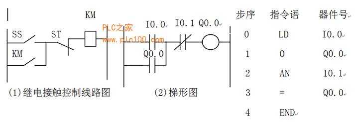 下例為PLC實(shí)現(xiàn)三相鼠籠電動(dòng)機(jī)起/??刂频膬煞N編程語(yǔ)言的表示方法: