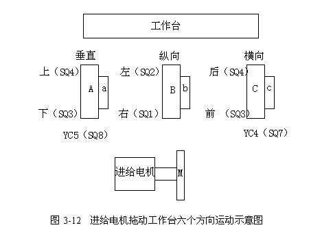 (3)1臺(tái)進(jìn)給電機(jī)拖動(dòng)工作臺(tái)六個(gè)方向運(yùn)動(dòng)示意圖