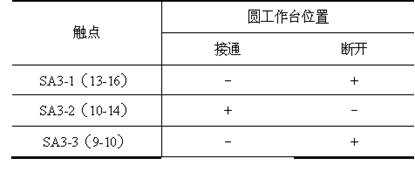 表3-1 圓工作臺(tái)轉(zhuǎn)換開關(guān)SA3觸點(diǎn)通斷情況
