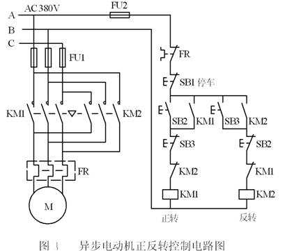 圖1中的FR是作過(guò)載保護(hù)用的熱繼電器,異步電動(dòng)機(jī)長(zhǎng)期嚴(yán)重過(guò)載時(shí),經(jīng)過(guò)一定延時(shí),熱繼電器的常閉觸點(diǎn)斷開(kāi),常開(kāi)觸點(diǎn)閉合。其常閉觸點(diǎn)與接觸器的線圈串聯(lián),過(guò)載時(shí)接觸器線圈斷電,電機(jī)停止運(yùn)行,起到保護(hù)作用。