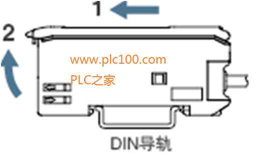 將光纖傳感器放大器單元中與光纖單元相連接的一側的鉤爪嵌入固定導軌后,再壓下直到掛鉤完全鎖定,如圖1所示。
