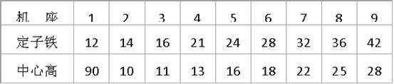 中、小型三相異步電動(dòng)機(jī)的機(jī)座號(hào)與定子鐵心外徑及中心高度的關(guān)系見表1和表2。