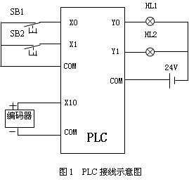 按照?qǐng)D1,完成PLC控制系統(tǒng)的硬件連接。圖中由于脈沖信號(hào)發(fā)生器的信號(hào)與按鈕輸入信號(hào)不同,因此,不能共用一個(gè)COM端。