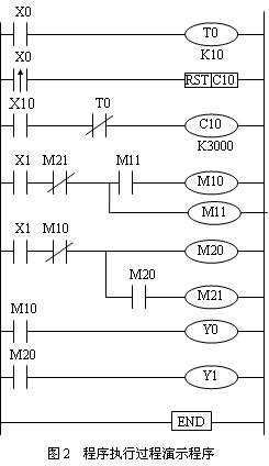 按照?qǐng)D2提供的梯形圖,利用計(jì)算機(jī)或手持編程器寫入PLC。