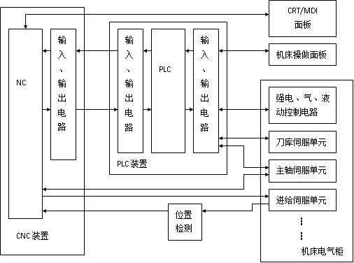 圖1 具有獨(dú)立型PLC的CNC機(jī)床系統(tǒng)框圖