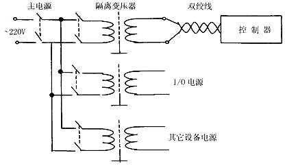 設(shè)置濾波器的作用是為了抑制干擾信號(hào)從電源線傳導(dǎo)到系統(tǒng)中,使用隔離變壓器,必須注意:屏蔽層要良好接地;次級(jí)連接線要使用雙繞線(減少電線間的干擾),隔離變壓器的初級(jí)繞組和次級(jí)繞組應(yīng)分別加屏蔽層,初級(jí)的屏蔽層接交流電網(wǎng)的零線;次級(jí)的屏蔽層和初級(jí)間屏蔽層接直流端。