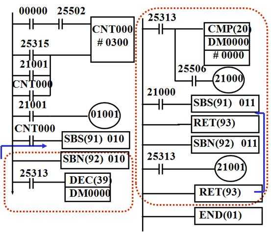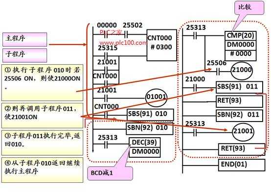⑤執(zhí)行子程序010時(shí),若25506 OFF則返回主程序。