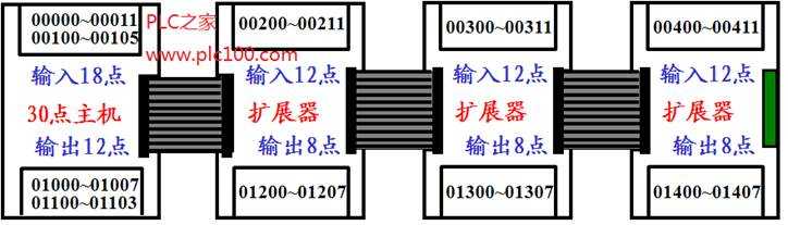 例:30點的主機,連接三個20點的擴展器。