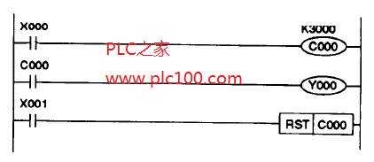 一旦計(jì)數(shù)器達(dá)到限度值,c000的輸出線圈閉合。為了向外部表示計(jì)數(shù)任務(wù)已完成,計(jì)數(shù)器c000的一個(gè)觸點(diǎn)用來激活輸出Y000,接著,起動(dòng)“STOP"燈LPl,從而使操作者知道目的已達(dá)到。