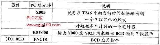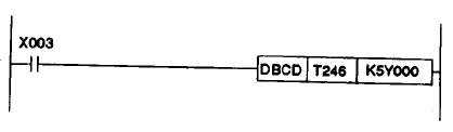 保存在定時器T246中的當前時間能被“復制”到輸出,這里為K5 Y000。這實際上表明5個BCD碼數(shù)字將從輸出點送出,從地址Y000開始。