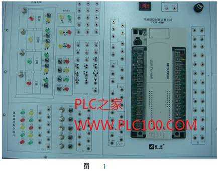 在圖1所示設(shè)備上,按照電氣控制原理圖完成PLC外部電路的連接。