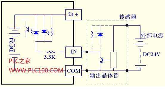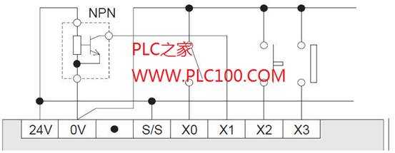 圖4 接有NPN型傳感器的典型輸入回路接線