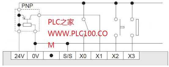 圖3所示為接有PNP型傳感器時(shí),FX2N可編程控制器輸入的典型接線。