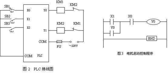 在正轉(zhuǎn)的情況下,要想實現(xiàn)反轉(zhuǎn),只有先按一下停止按鈕,使Y0失電,從而正轉(zhuǎn)接觸器斷電,即使松開停止按鈕Y0、Y1仍失電。再按反轉(zhuǎn)按鈕后,由于Y0失電,其動斷觸點閉合,Y1導(dǎo)通,反轉(zhuǎn)接觸器KM2線圈帶電。接在圖1主控回路中主觸點閉合,由于電源相序變化,電機反轉(zhuǎn)。