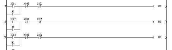 本來是以X04為全程序, X04非作為簡單程序,但在程序結(jié)束的時候,不能令M0置零.所以增加了X05作為簡單程序的選擇按鈕.