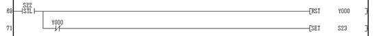 狀態(tài)轉(zhuǎn)移到S22,對Y0清除指令,即停止進水.當(dāng)Y0停止時,即Y0非置1,狀態(tài)轉(zhuǎn)移到S23.