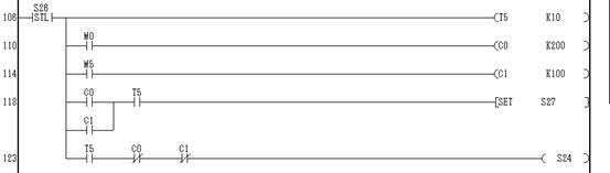 如果選擇的是全程序 (按X04),那么C0計數(shù),當(dāng)計數(shù)不夠200次時,狀態(tài)轉(zhuǎn)移到S24.計數(shù)滿200次時,狀態(tài)轉(zhuǎn)移到S27.