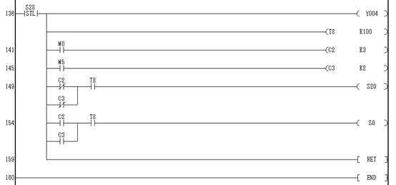 如果選擇的是簡單程序(按X05),那么C3計數(shù),當(dāng)計數(shù)不夠2次時,狀態(tài)轉(zhuǎn)移到S20.計數(shù)滿2次時,狀態(tài)轉(zhuǎn)移到S0.