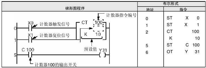 當(dāng)X0的上升沿被檢測(cè)到十次后,計(jì)數(shù)器的觸點(diǎn)C100閉合、Y31變?yōu)?/span>ON。