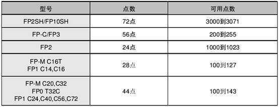 對(duì)于FP-C/FP-M/FP0 T32C/FP1/FP2/FP2SH/FP3/FP10SH,計(jì)數(shù)器可用的點(diǎn)數(shù)如下。