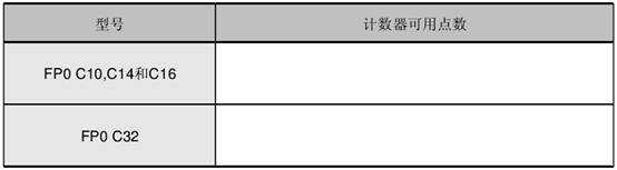 對(duì)于FP0 C10/C14/C16/C32,計(jì)數(shù)器可用的點(diǎn)數(shù)如下。