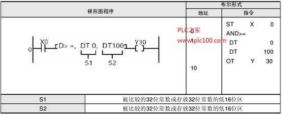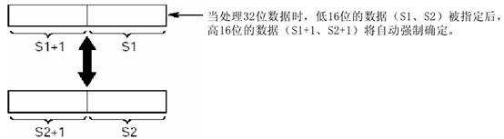 在處理32位的數(shù)據(jù)時(shí),指定低16位區(qū)(S1, S2)后,將自動(dòng)確定高16位區(qū)(s1+1, s2+1)。