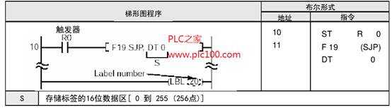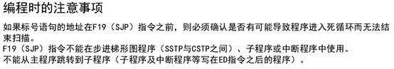 如果沒有與S指定的數(shù)值相同的編號、或S中存放的數(shù)值超出范圍,F19 (SJP)指令都不會被執(zhí)行。